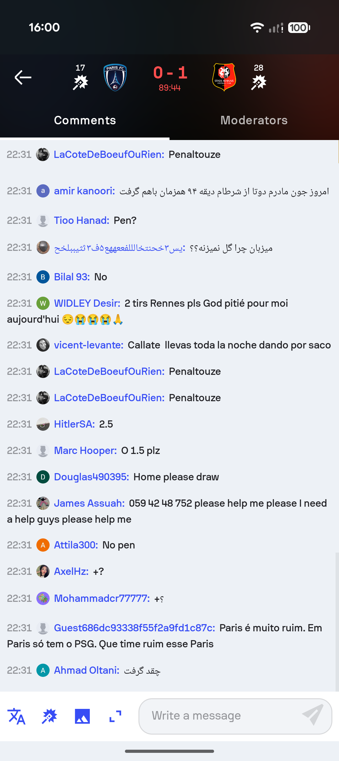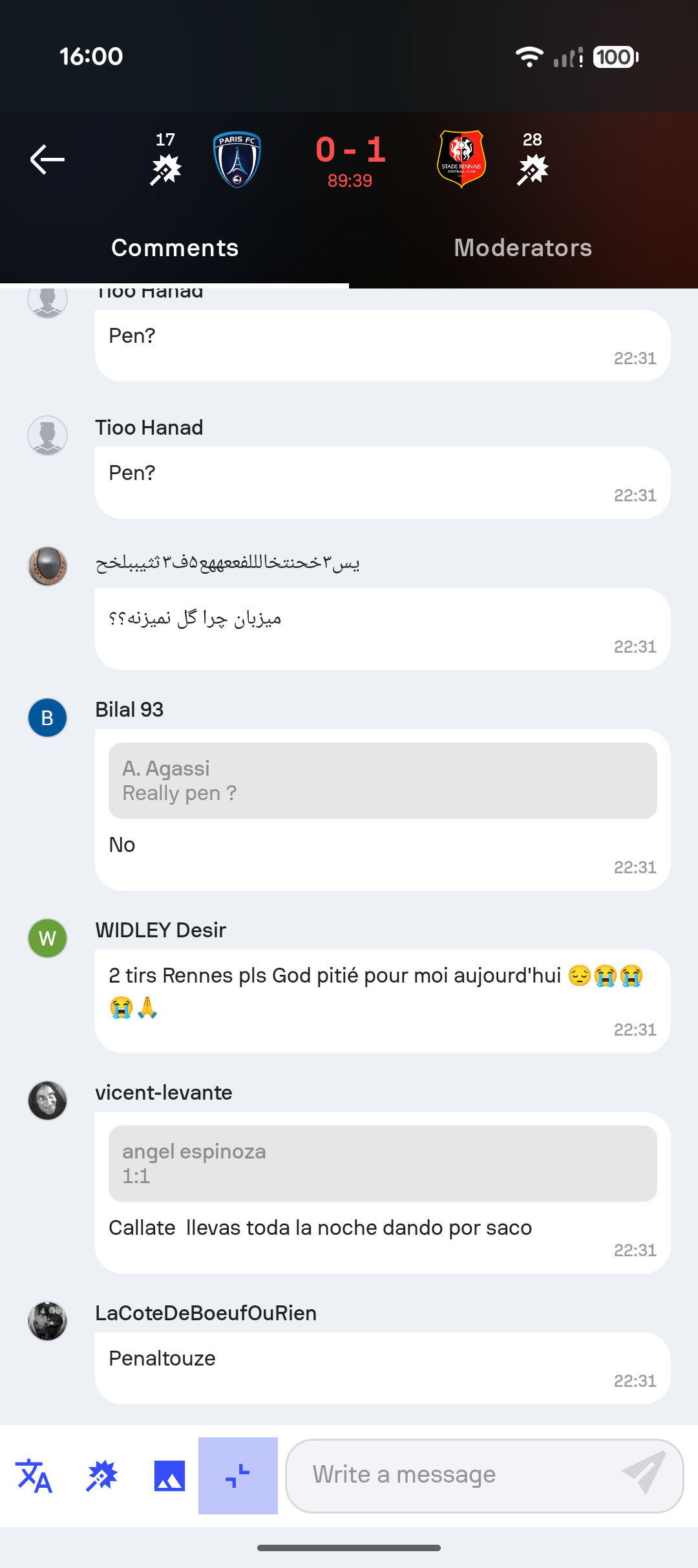 Alternative chat view To see more messages at once in chat, you can switch to a different view. Press the double arrows next to the message box to activate this view. To report a message, simply long-press on the text.