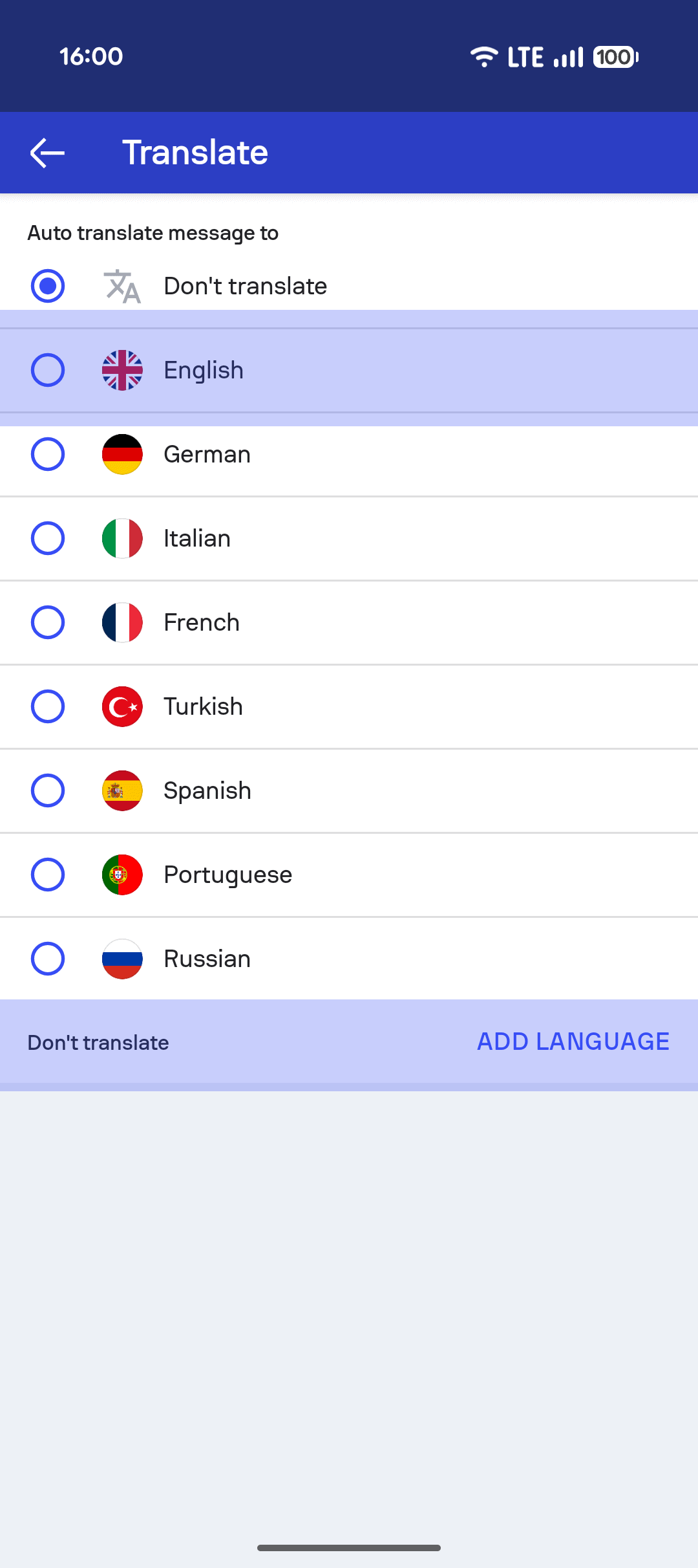 - To exclude certain languages from automatic translation, tap Add language under Don't translate section